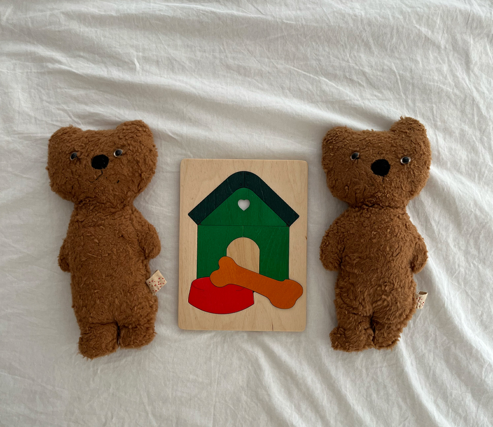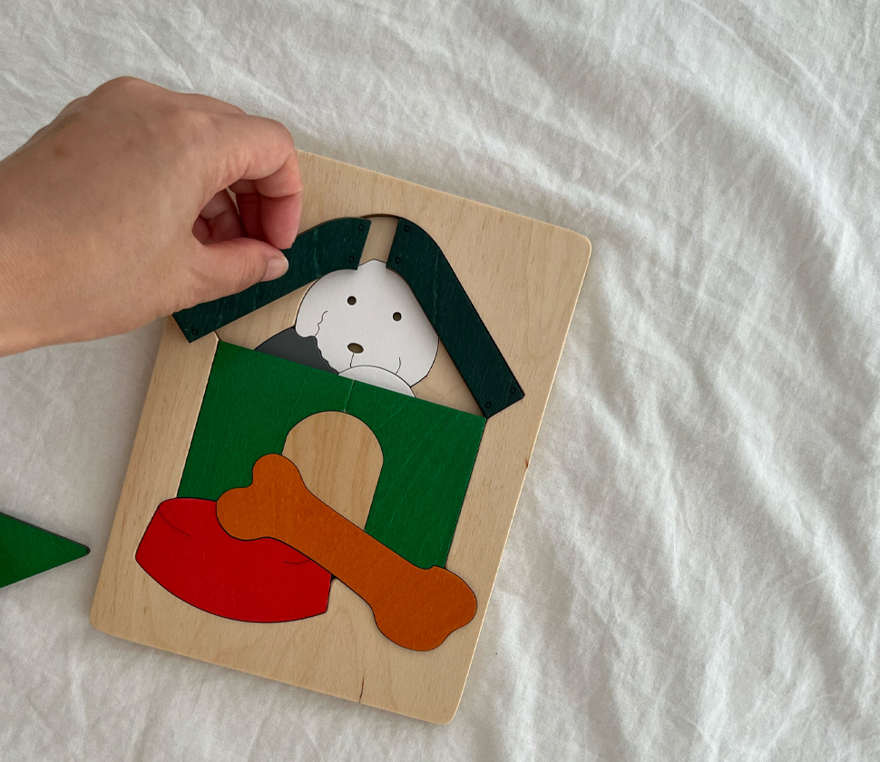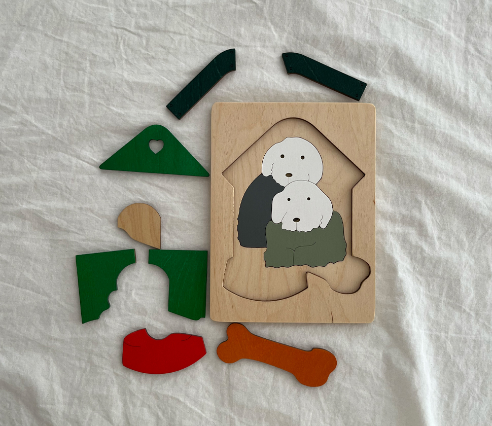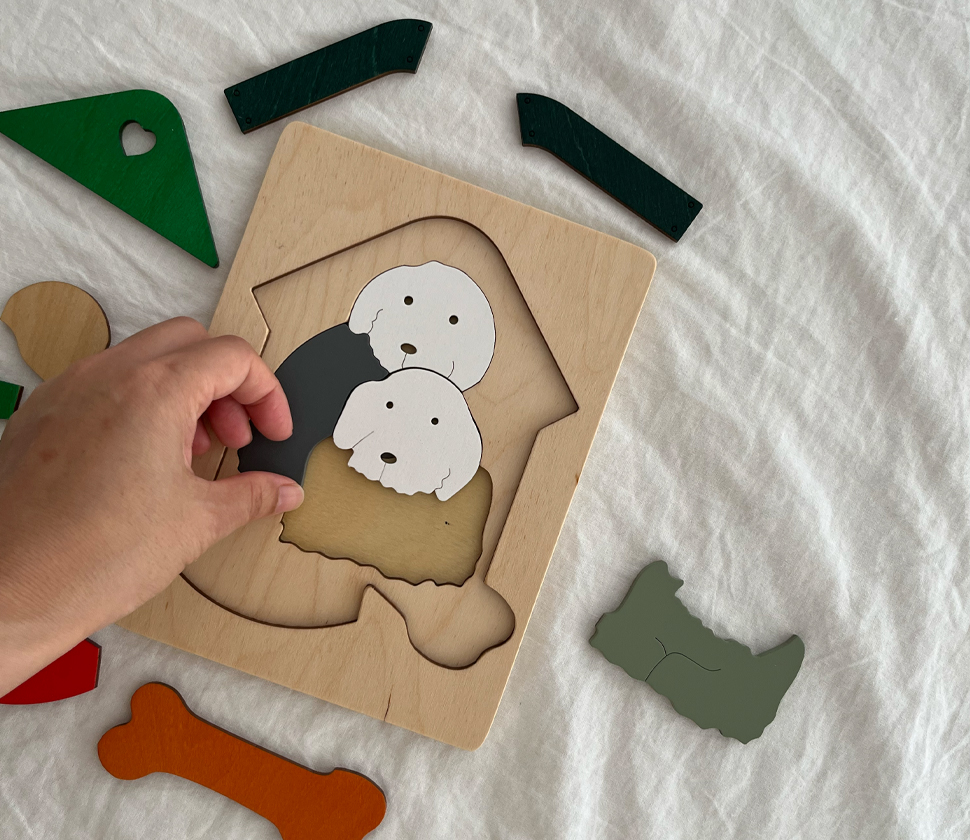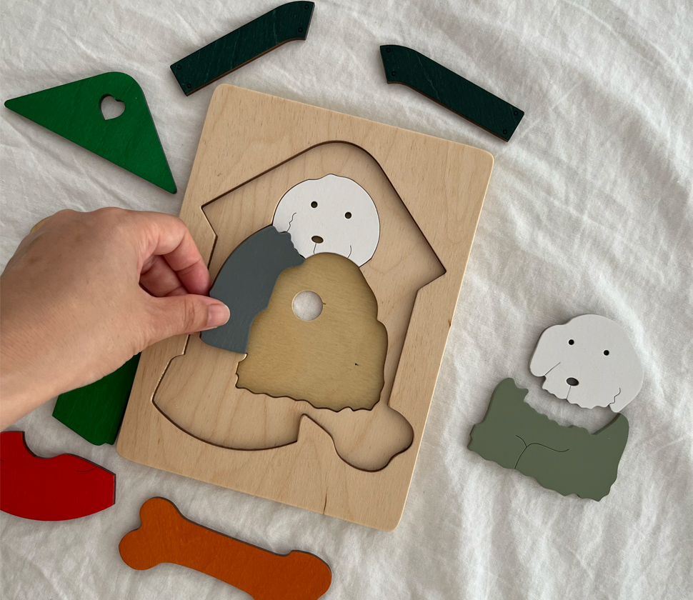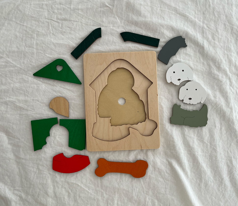 身近な動物である犬をモチーフにしたこのパズルは、動物に興味を持ちはじめたちいさな子にぴったりです。